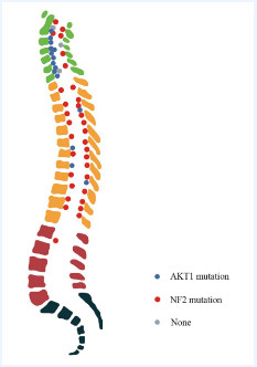 图1:AKT1和NF2突变型脑膜瘤沿脊柱的解剖分布及其与脊髓的关系